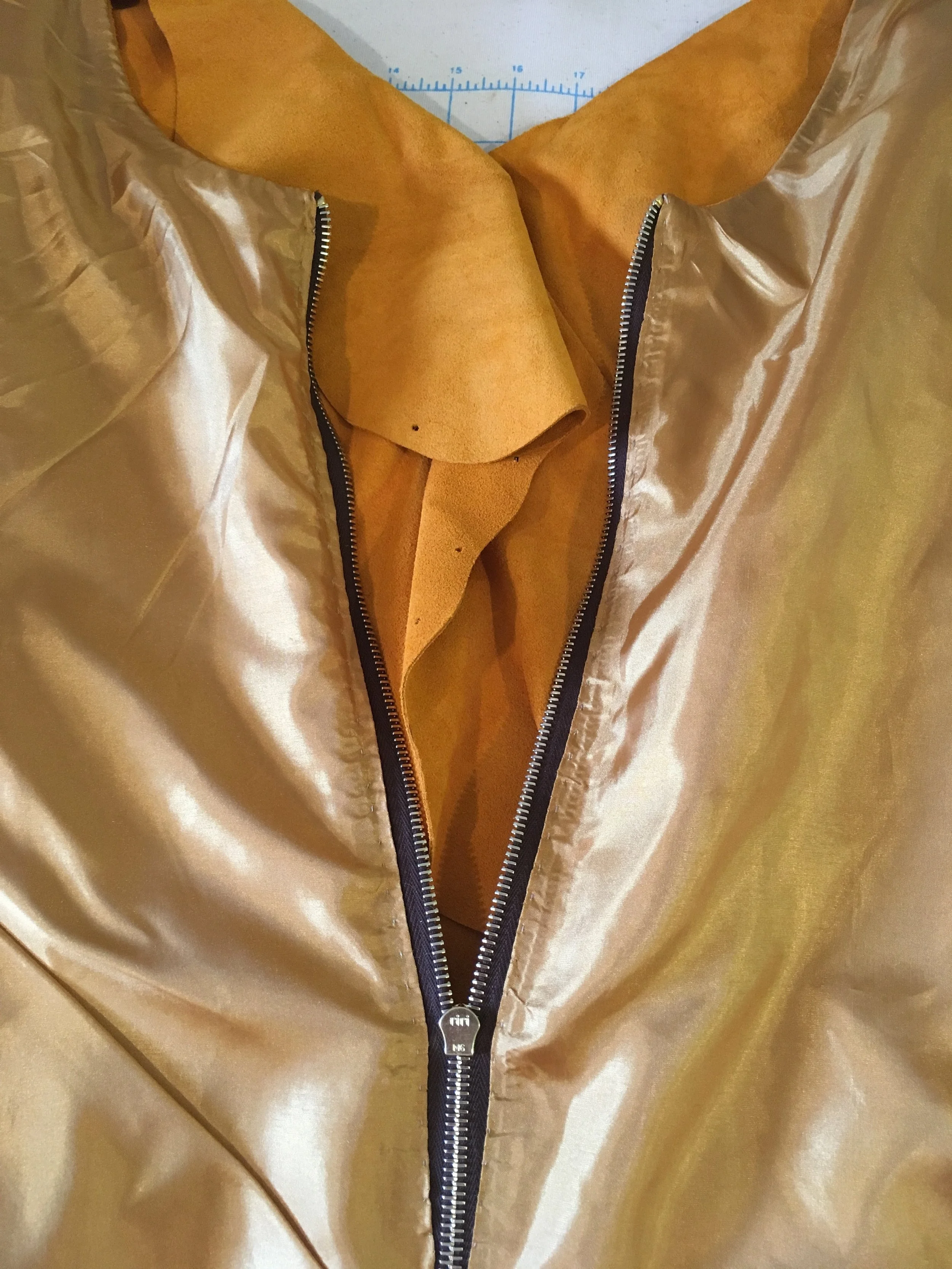 This is the point at which I’d settle in next to my iron with my sharp needle and thread and start hand picking the lining to close in the zipper, but again, this is leather…so I won’t get away that easy!
