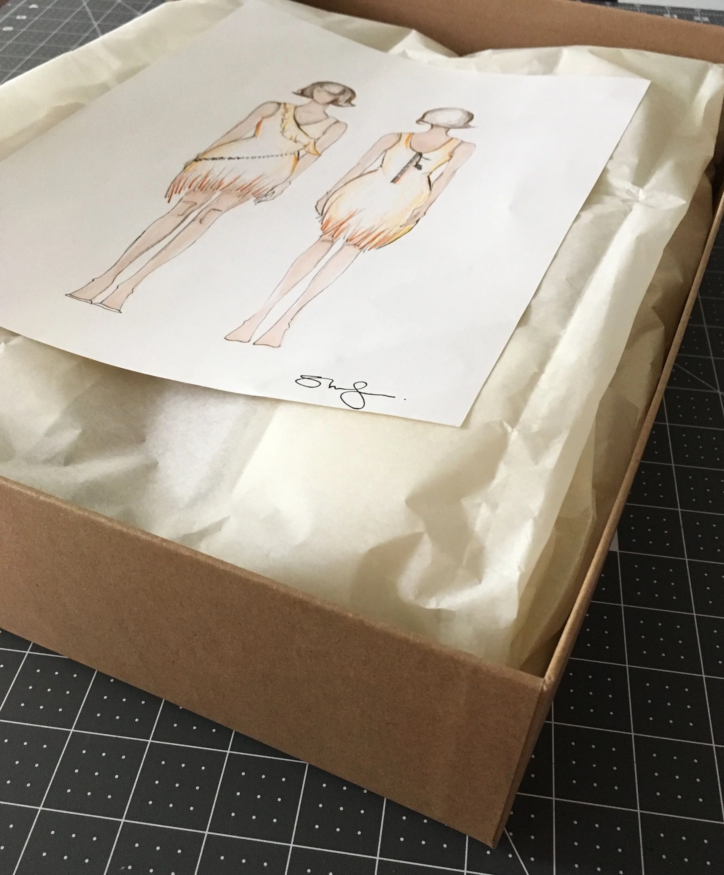 It’s custom, and superstition, that couturiers will not stitch the tag into the garment until the final fitting is complete, as it’s bad luck. And I am not one to mess with superstition. So once the final fitting is complete, I’ll stitch the tag in right there at the last second!